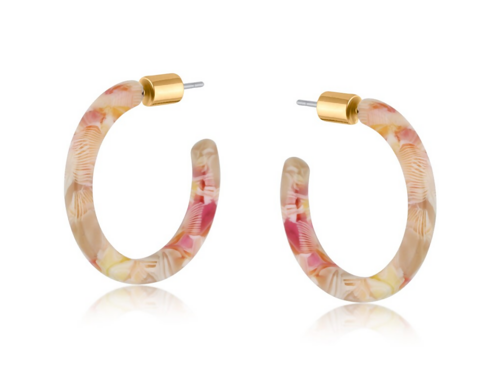 これらのハンドクラフトのラージフープレジンピアスは、柔らかくエレガントな色合いが特徴で、大胆でありながら上品な印象を与えます。カジュアルからフォーマルまで、どんなスタイルにもモダンなアクセントをプラスするスタイリッシュなアクセサリーです。