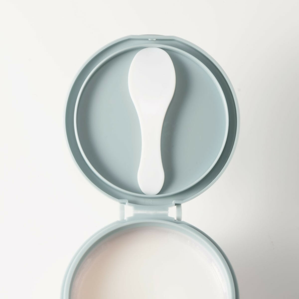 3付属のスパチュラでひとすくいを乾いた手のひらに取ります。