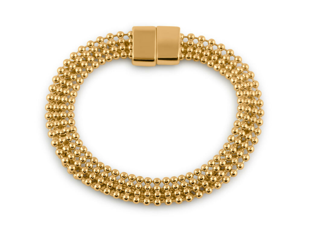 ゴールドまたはシルバープレーティングでハンドクラフトされたマグネティックメッシュブレスレット。光沢のある仕上げとモダンで緻密なデザインが特徴です。スタイルと使いやすさを兼ね備えた洗練されたアクセサリーで、どんなコーディネートにもスマートな印象をプラスします。使用している真鍮のうち少なくとも50%は製造過程で出る残材をリサイクルしたサステナブル素材です。
