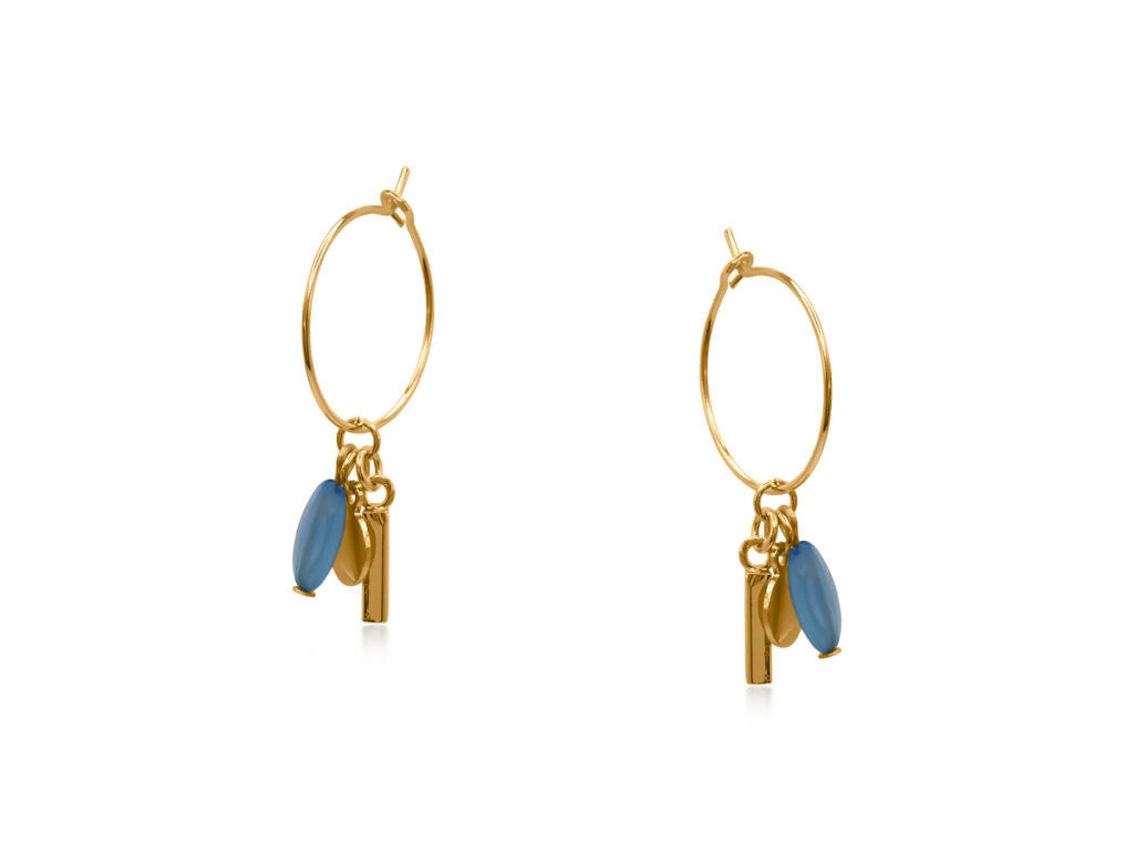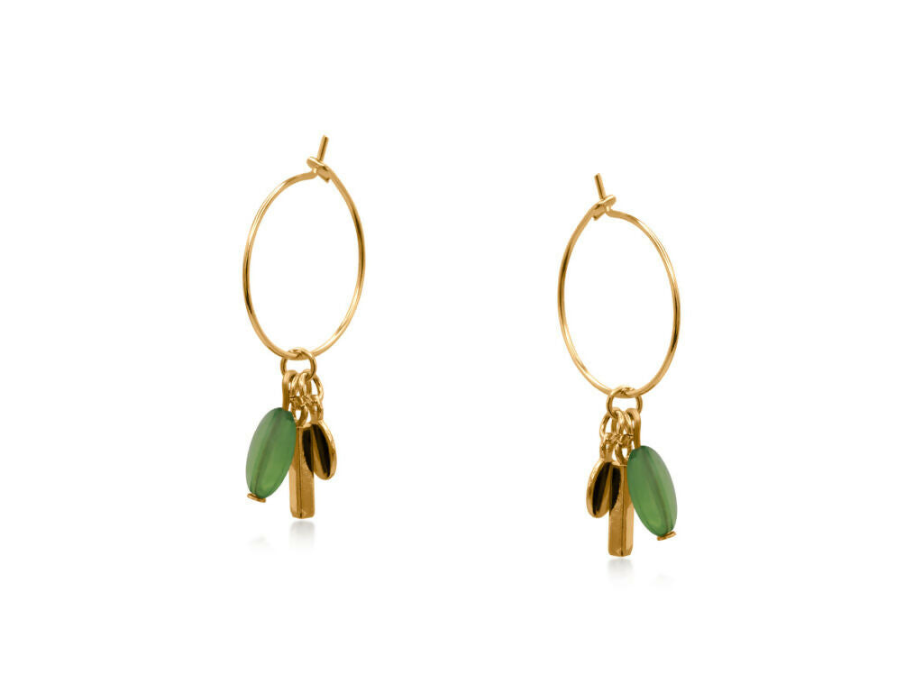 耳元で揺れるストーンビーズとゴールドの輝きが、遊び心と上品さを両立するハンドクラフトフープピアス。