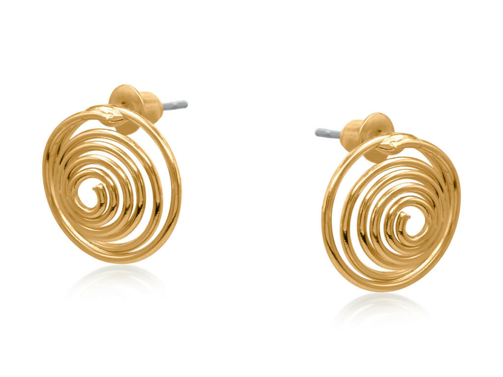 大胆な同心円状のコイルデザインと光を受けて美しく輝くハイシャイン仕上げが印象的な、ハンドクラフトピアス。クラシックなスタッドに彫刻的なひねりを加え、耳元にアーティスティックな存在感をプラスします。