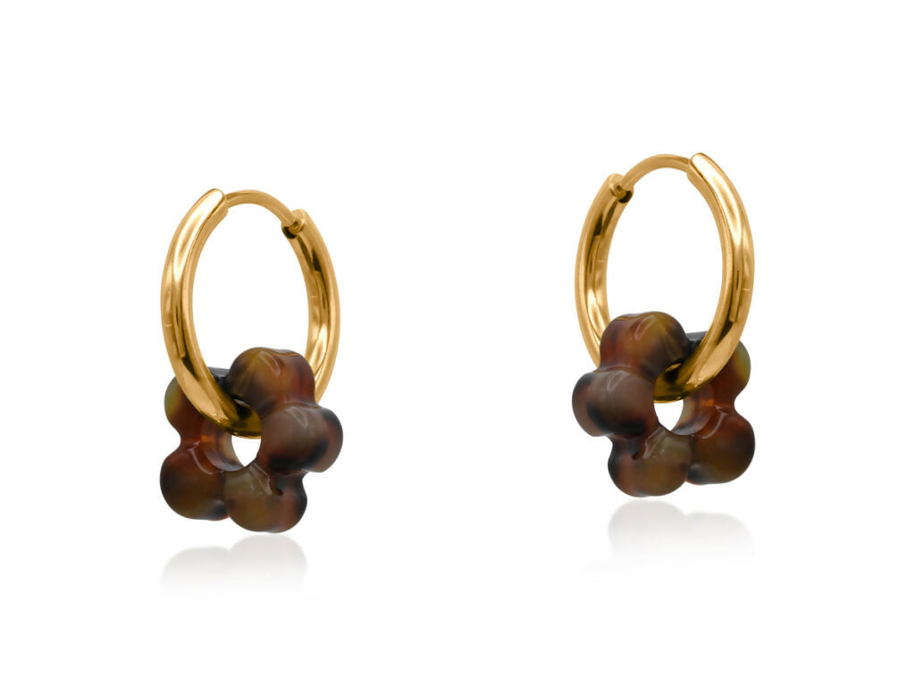 艶やかなゴールドプレートのフープにセットされ、軽やかな着け心地とモダンなアクセントを両立。