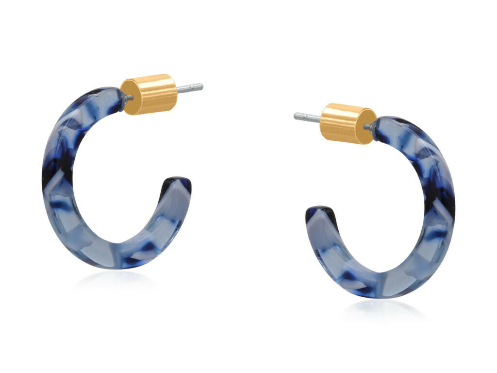 クラシックなフープピアスをプチサイズのレジンシルエットで再解釈したデザイン。