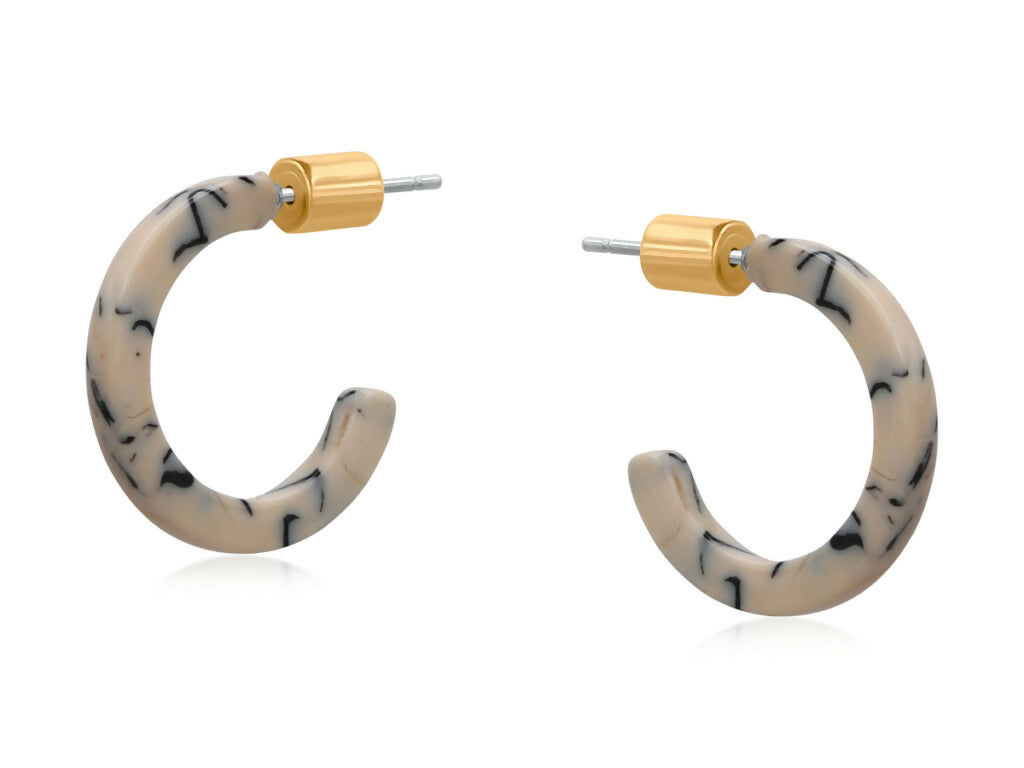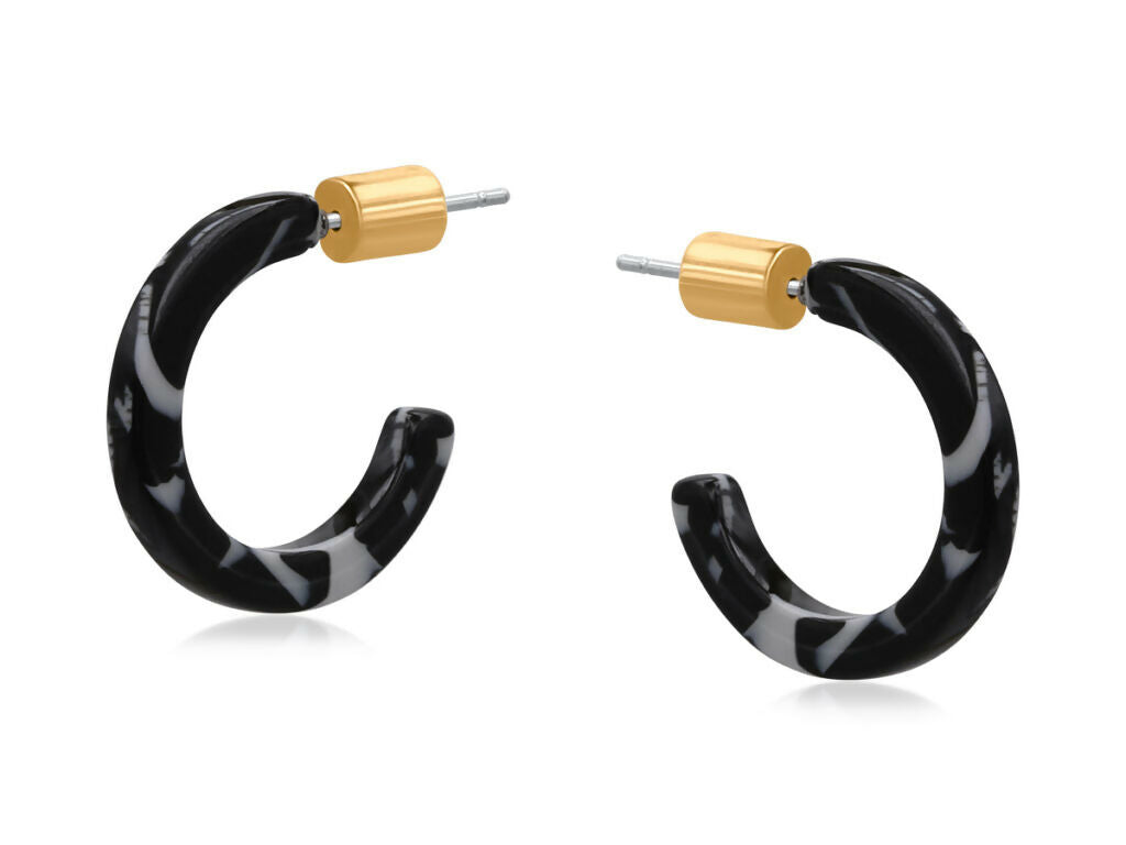 プチサイズのフープピアスを、時代に左右されないモノトーンで仕上げたデザイン。