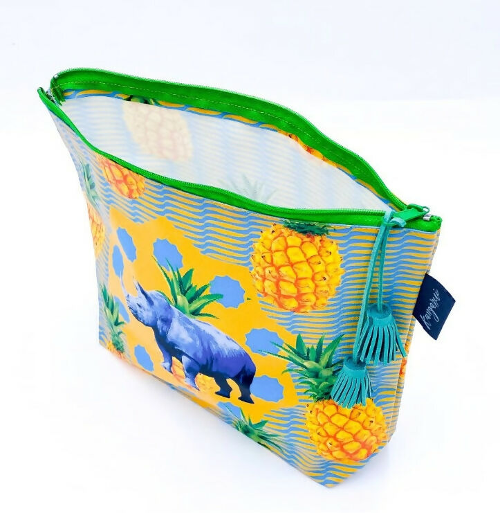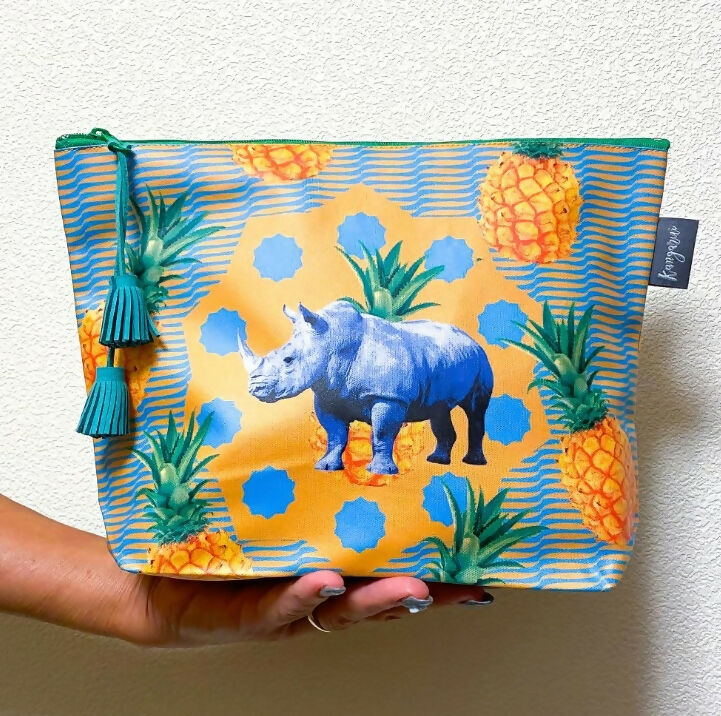 サファリポーチ(L)マチ付き パイナップル ライノ