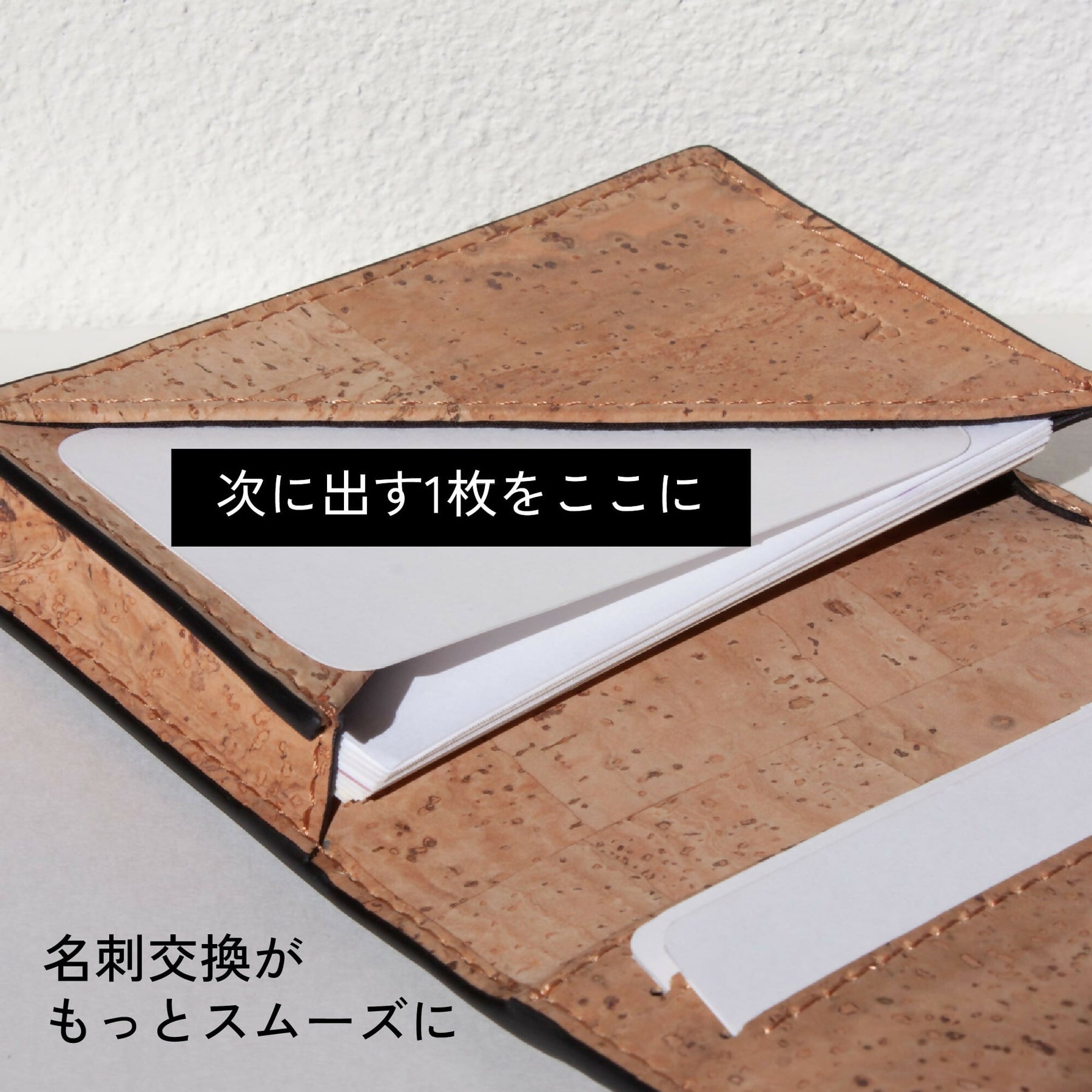 ● スマートなスリット:内側の谷型スリットには、次に渡す1枚をセット。もたつくことなく、流れるような名刺交換を演出します。